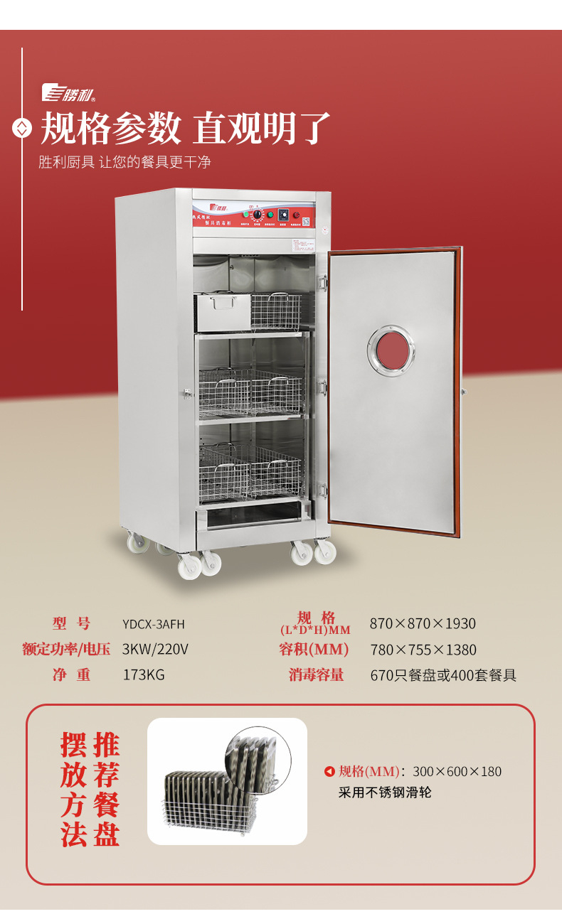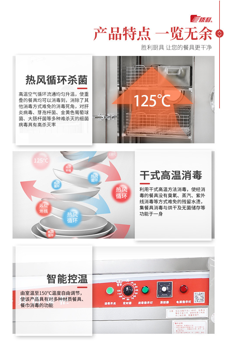 胜利牌单门热风循环 酒楼餐厅厨房不锈钢远红外线 餐具厨具消毒柜