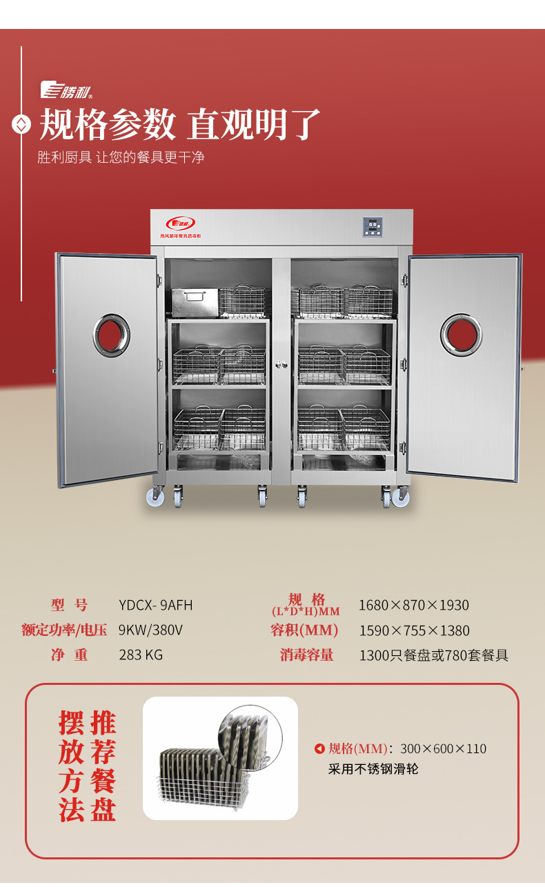 • YDCX-9TⅢH胜利牌商用不锈钢消毒柜酒店工厂学校烤箱热风循环高温