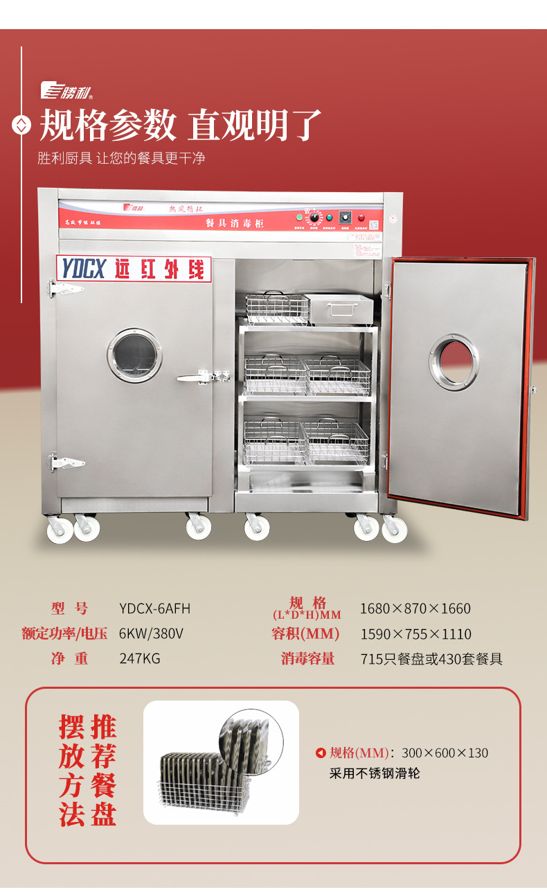 • YDCX-9TⅢ胜利牌消毒柜商用紫外线热风循环高温不锈钢酒店餐厅食