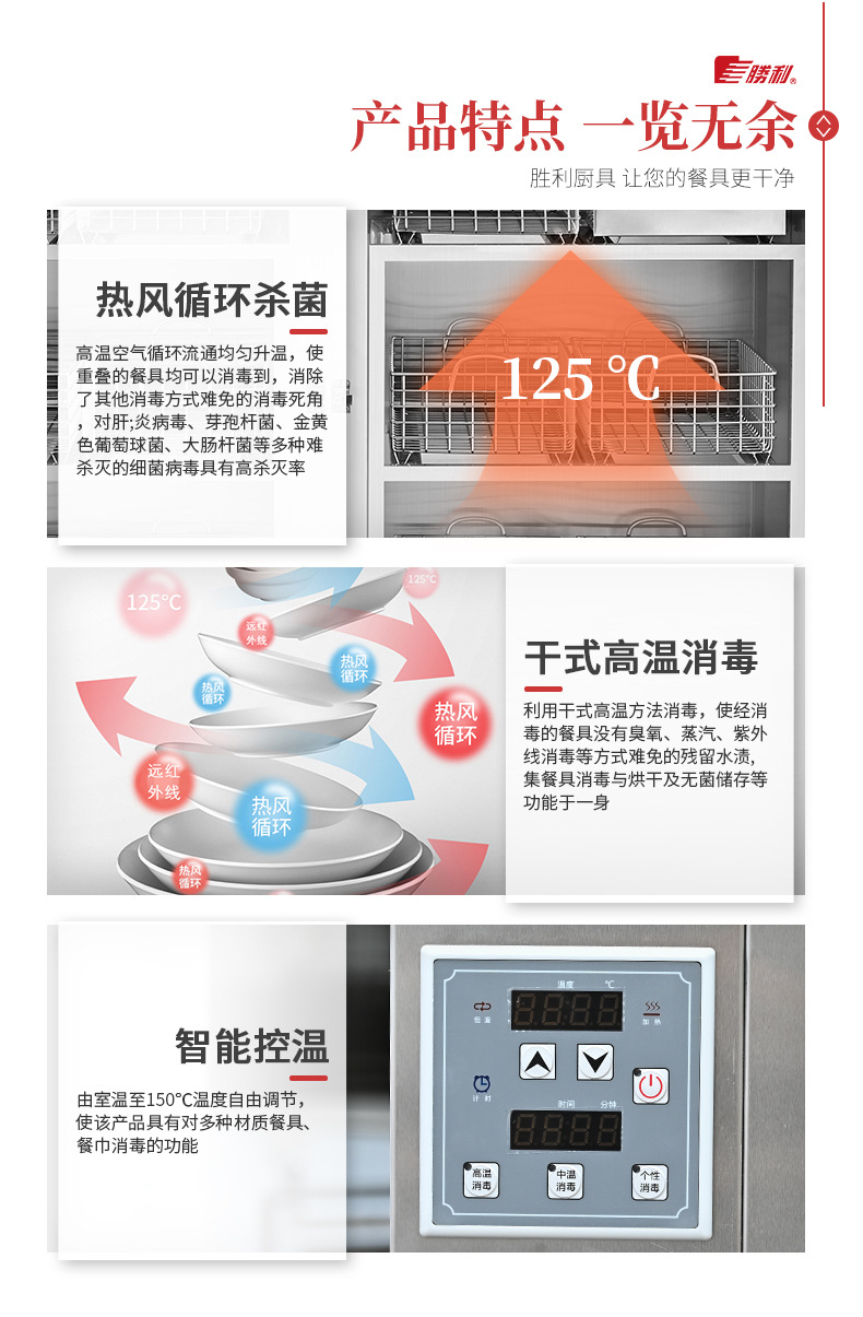 • YDCX-9TⅢH胜利牌商用不锈钢消毒柜酒店工厂学校烤箱热风循环高温