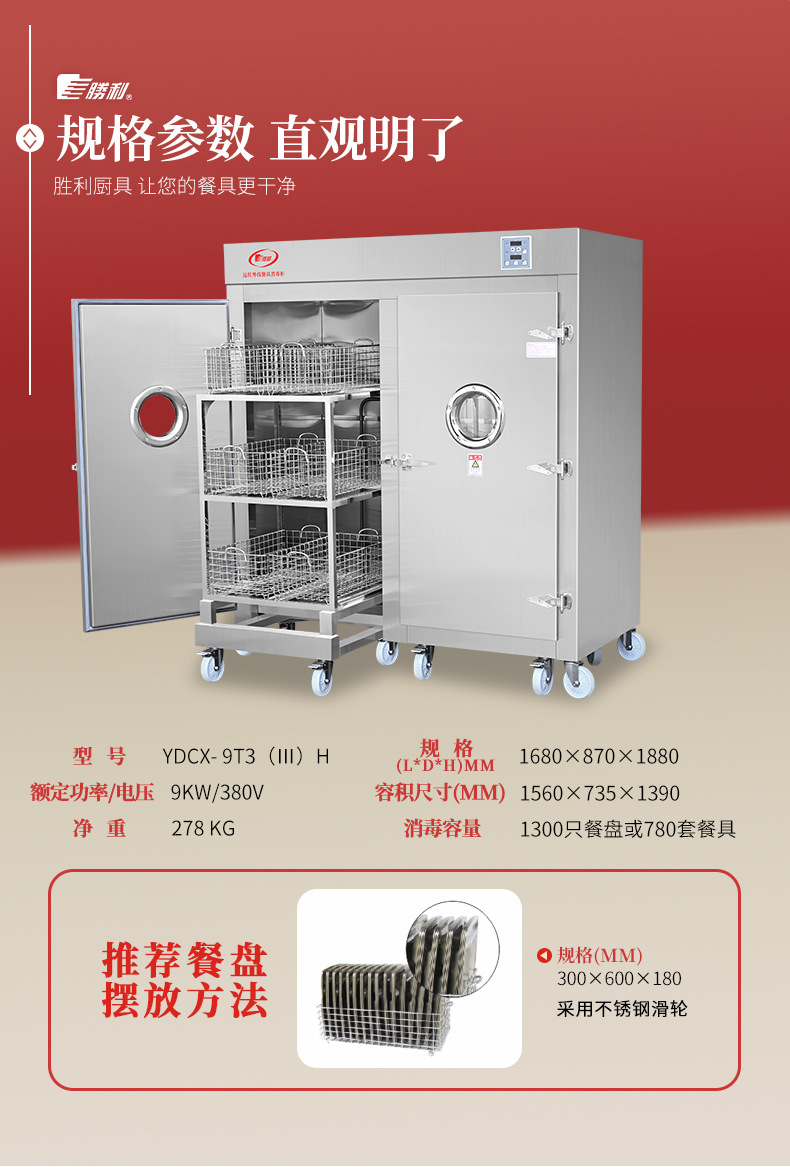• YDCX-9TⅢH胜利牌商用不锈钢消毒柜酒店工厂学校烤箱热风循环高温